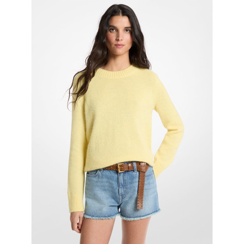 ? Sweater? Nylon/alpaca? 55% nylon/45% alpaca hair? Trim - 56% nylon/43% alpaca hair/1% elastane? Hand wash? Imported? Model is 510/178 cm wearing size XS