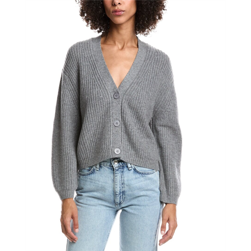 [US] Forte Cashmere wool & cashmere-blend short rib v-neck button cardigan