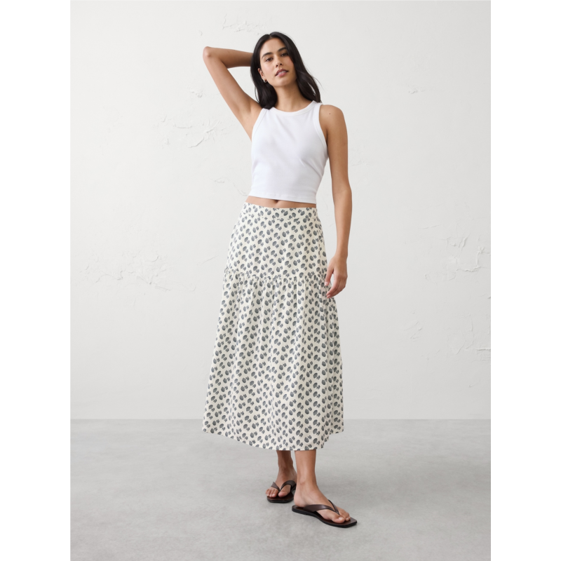 [US] bananarepublic Linen-Blend Tiered Midi Skirt