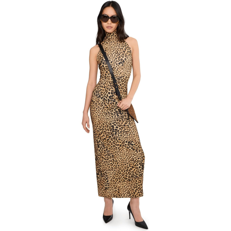 [US] Womens Norma Kamali Halter Turtle Side Slit Gown
