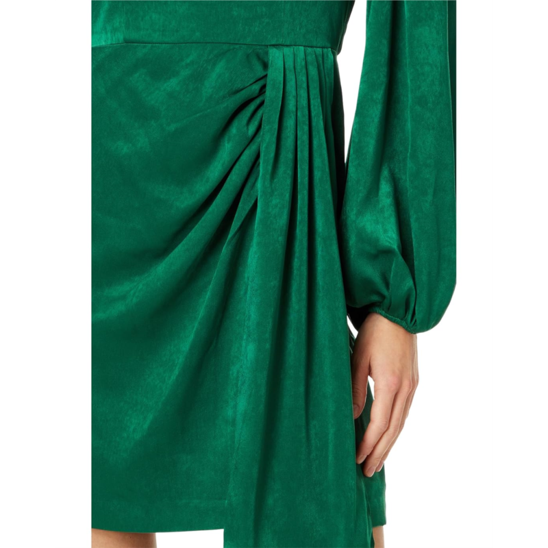 - Turn heads and steal the spotlight in Adrianna Papell Short Satin Dress! Crafted from luxurious satin fabric, this chic A-line dress features a flattering sweetheart neckline and elegant long blouson sleeves. The above-the-knee length and shirring detail add a playful yet refined touch, while the draped panel detail ensures a graceful silhouette. With a convenient zipper closure at the center back, this dress blends sophistication with ease.