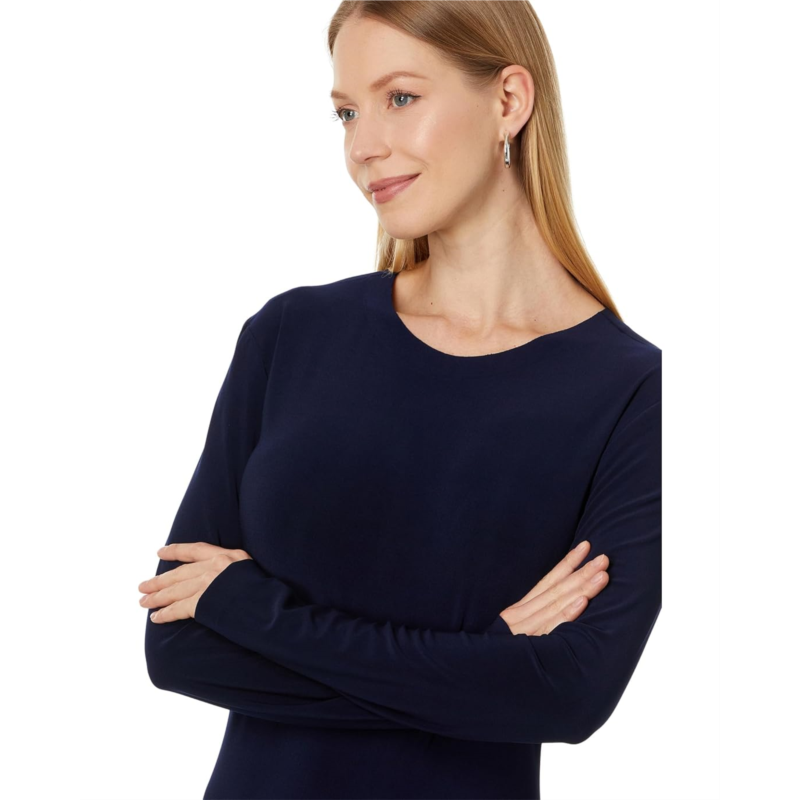 - Own the room with sophisticated grace styling Norma Kamali Long Sleeve Crewneck Side Slit Gown! Elevate your style effortlessly with its slim fit and ankle-length allure. The pull-on design ensures convenience while the side slit adds a touch of daring sophistication.
