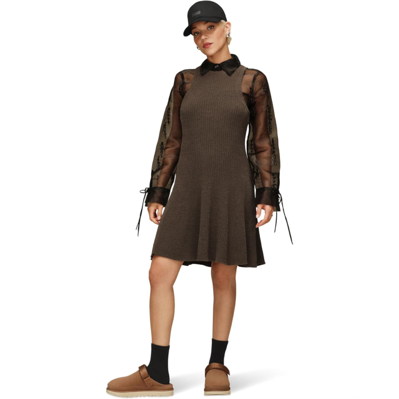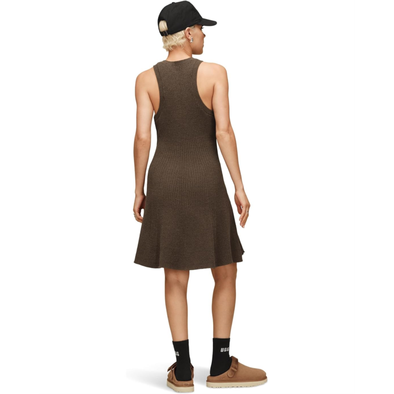 - The art of the easy upgrade, UGG Australia Adela Dress Lite. Designed in a flattering above-the-knee silhouette, this sleeveless dress features a modern high neckline that adds a sleek and sophisticated touch. Crafted from UGGs signature Cozy Knit Lite fabric, it delivers an ultra-soft feel with lightweight comfort that moves with you throughout the day. The flouncy fit-and-flare shape creates a playful, feminine flow, while the racerback design ensures easy movement and breathable wear. With its convenient pull-on style, getting dressed becomes effortlessly simple.