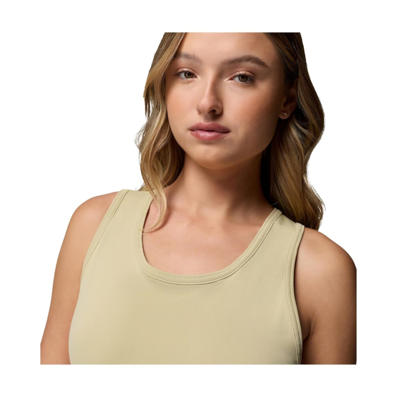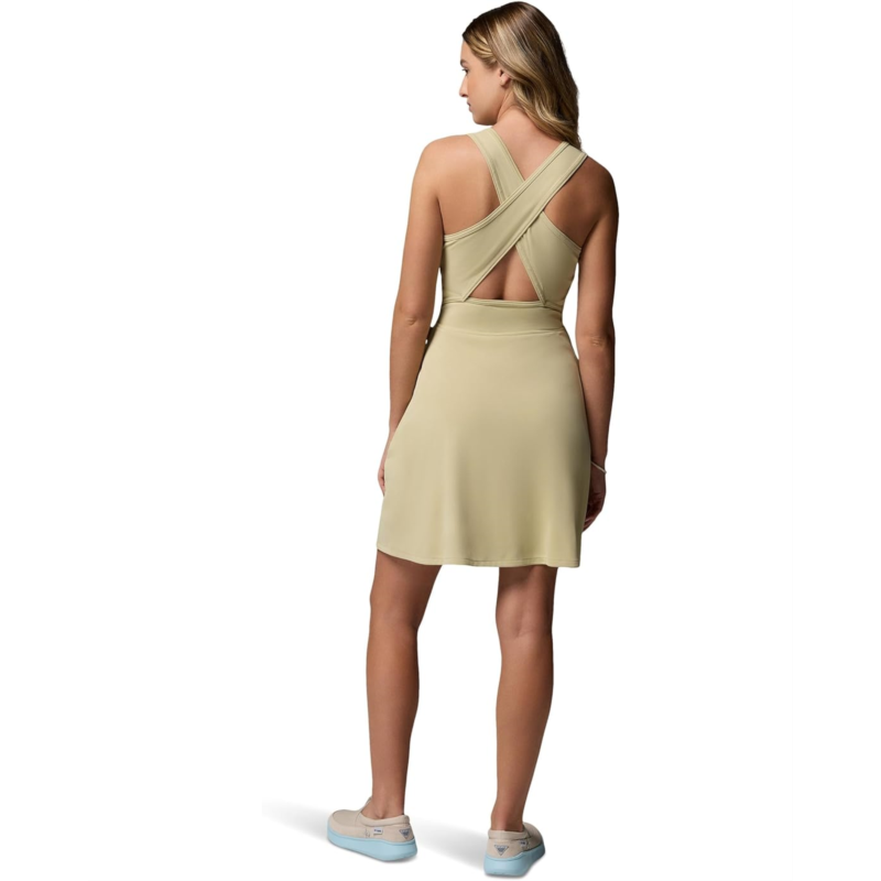 - Discover the perfect look that speaks volumes about your fashion-sense donning the Columbia Tidal Dress. The above-knee-length dress features Omni-Shade Broad Spectrum UPF 50 technology, built-in interior short for an active fit, and sleeveless construction with crisscross back detailing. It is crafted from Omni-Wick fabric that keeps you dry and cool by pulling moisture