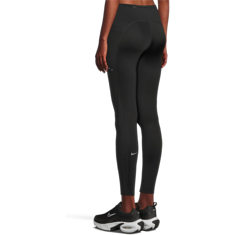 - Make your sports routine more functional and comfortable wearing Nike Dri-fit Swift High-waisted 7/8 Running Leggings With Pockets. These midweight, sweat-wicking leggings have been designed to help reduce chafing and improve breathability. A zippered pocket in the back of the waistband is large enough to hold even larger smartphones. Two drop-in side pockets offer extra storage to store your essentials, so you can rack up your miles with everything you need close by. Nike Dri-FIT technology moves sweat away from your skin for quicker evaporation, helping you stay dry and comfortable. It combines with perforations behind the knees to help moisture escape. The absence of seams on the inner legs helps reduce chafing. Plus, the reflective graphics on the outer thighs add an authentic touch.
