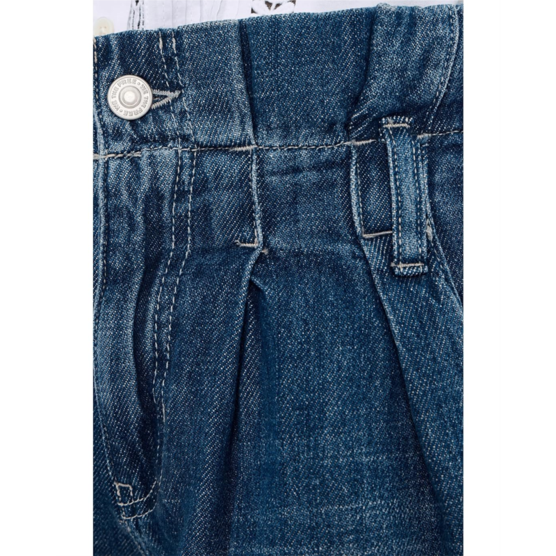 - Button closure and zip fly, pleating at top, five-pockets design, defined paneling for a skirt-inspired look.