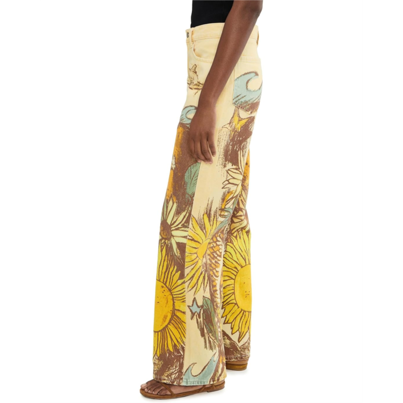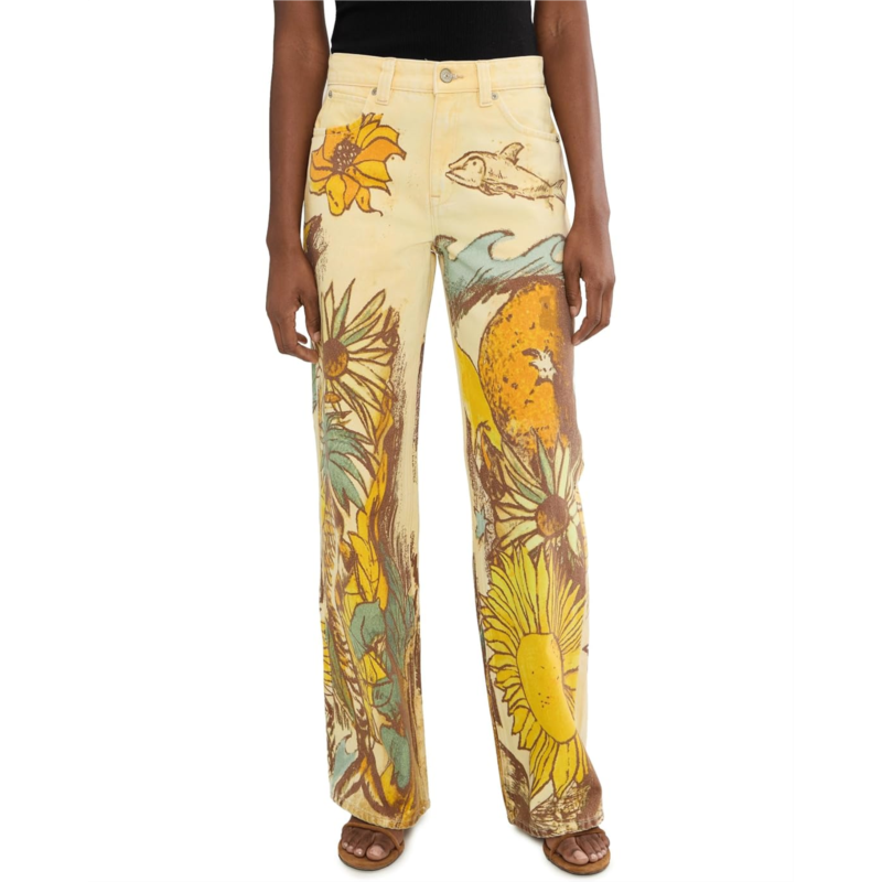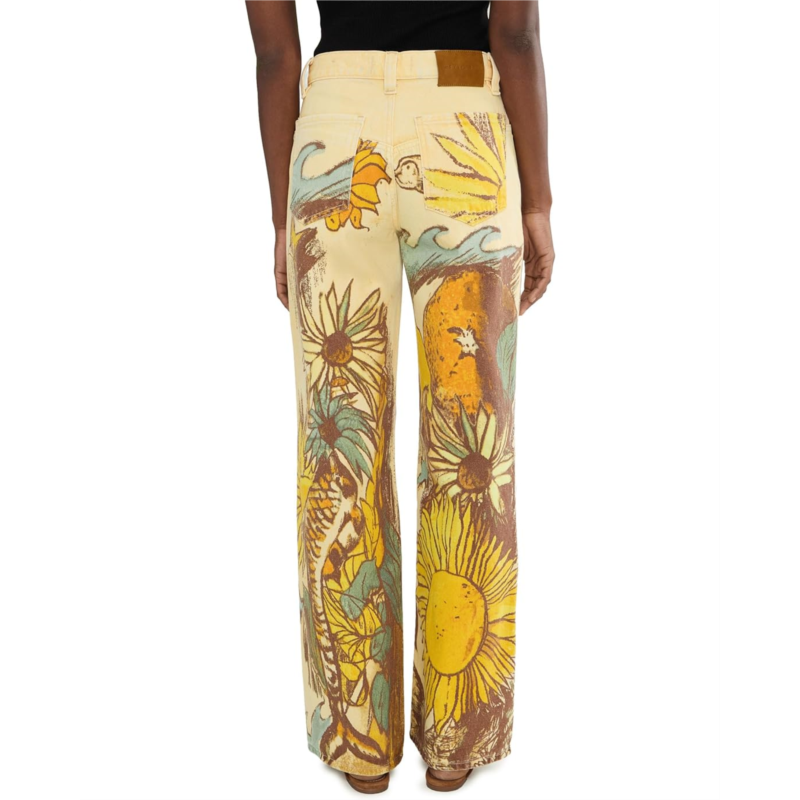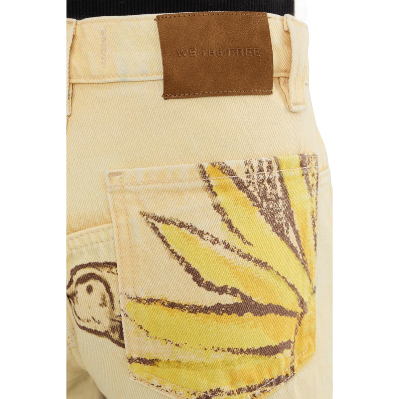 - The Free People Tinsley Printed are slouchy, cool, and timeless. They feature a low-rise, low-slung fit with a loose silhouette throughout, crafted from authentic rigid denim for a true vintage feel. Details include classic five-pocket design and a puddled hemline that enhances their laid-back, effortless vibe.