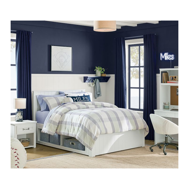 The Belden Collection is the perfect solution for shared or small spaces. The platform and bunk beds are made out of solid wood frames and feature extra storage. To finish off the collection, we use applique molding on drawer fronts and brushed Nickel drawer pulls.