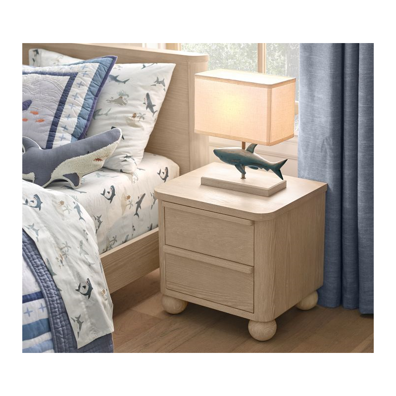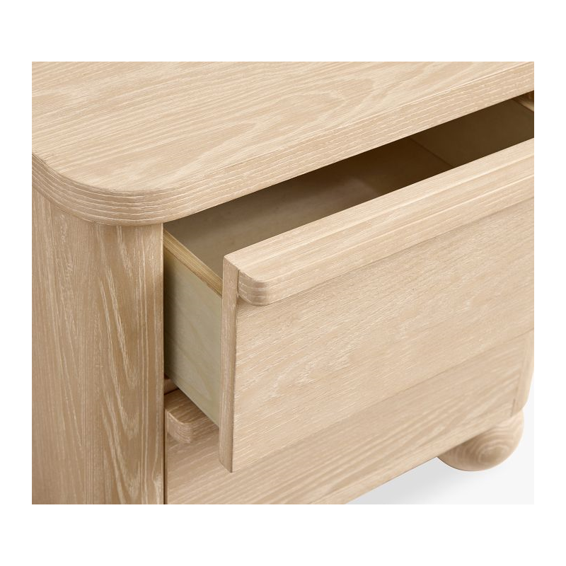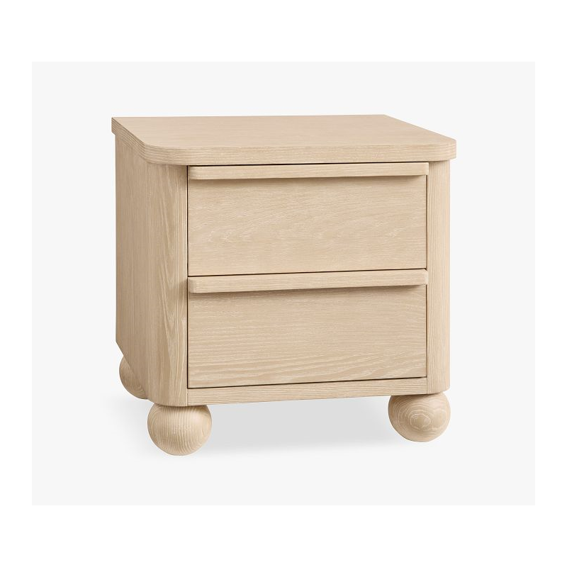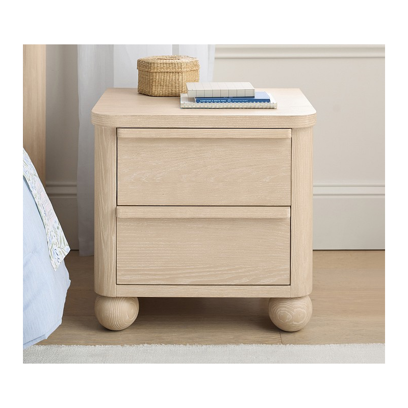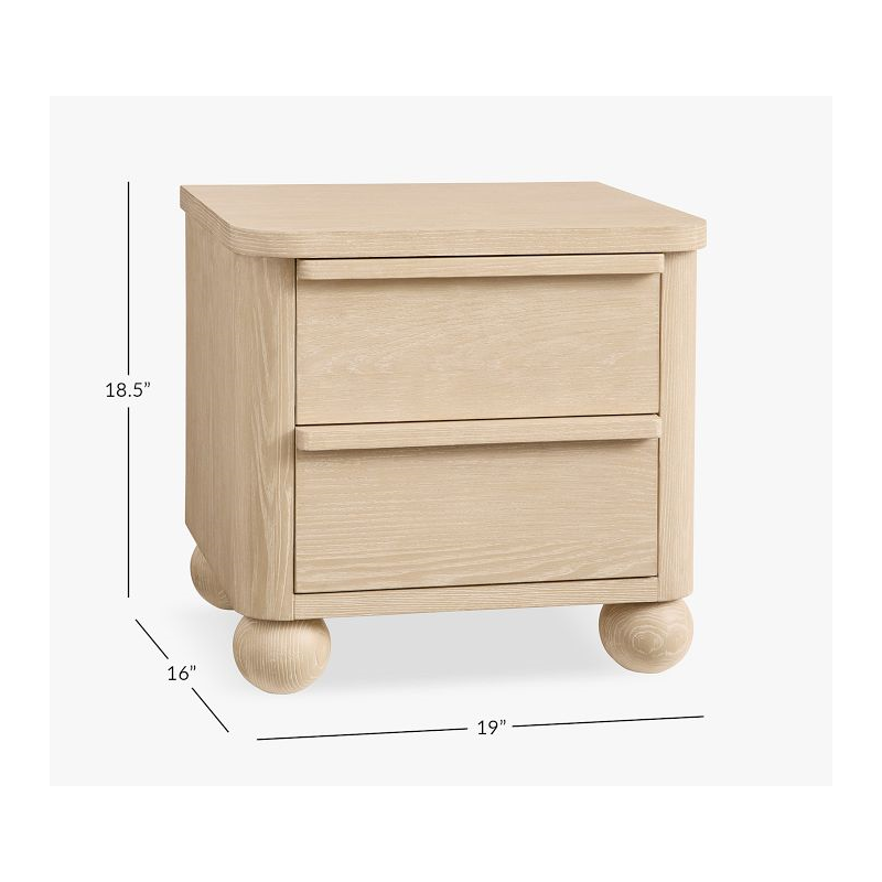 A neutral hue combines with a clean silhouette for a stylish nightstand that complements nearly any decor. It keeps all their bedside essentials organized in two deep drawers, and spherical feet add a touch of playfulness. Expertly built from kiln-dried wood for enduring quality, it’s clad in ash veneer and given a 14-step Sandstone finish. Plus, it’s UL GREENGUARD Gold Certified to contribute to healthier indoor air.