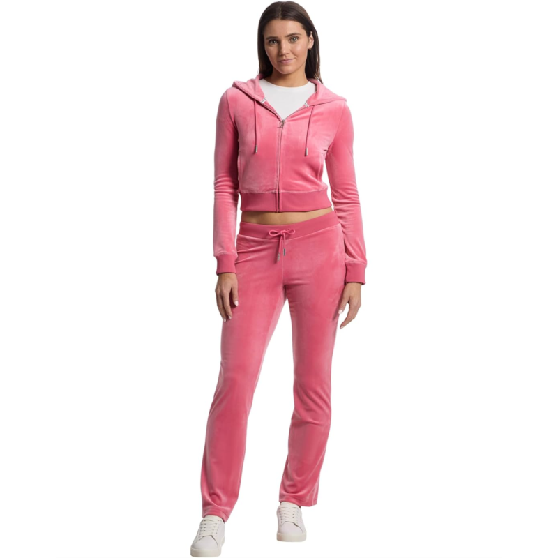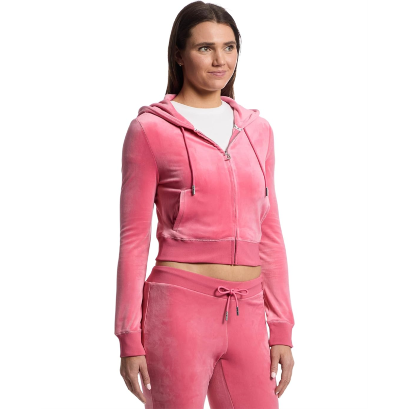 Express your inner fashionista this fall by pairing up your laid-back style or post-workout outfit with the Juicy Couture Solid Classic Juicy Hoodie With Back Bling. Designed in a super-soft, cozy, and luxe velour fabric, this layering essential features a hooded construction with adjustable drawstring, long sleeves with ribbed cuffs, full-length zippered front with an iconic gothic logo zipper pull, functional hand pockets, and a ribbed hem. All style of this hoodie lies in its shimmery logo embellishment at the back.
