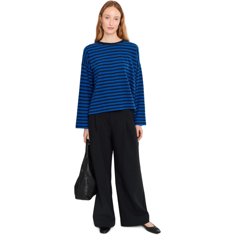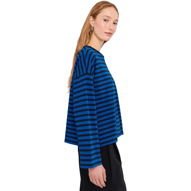 Coming in 100 percent jersey, this easy striped crewneck tee has wide long sleeves. Plus, its oversized fit is perfect to tuck into jeans.