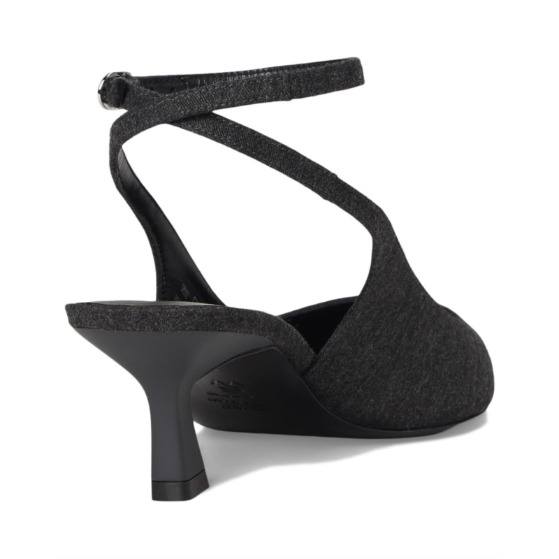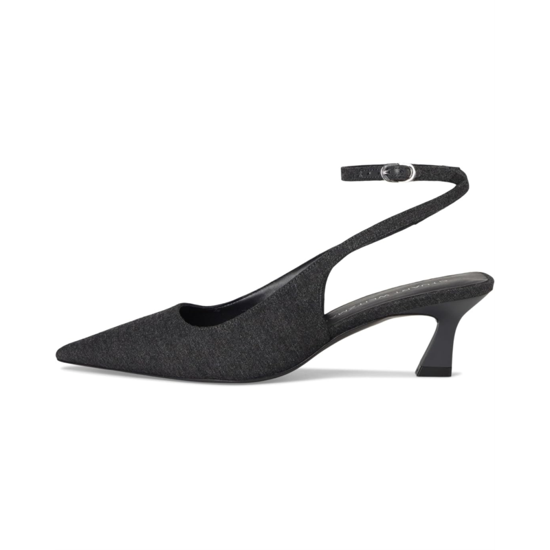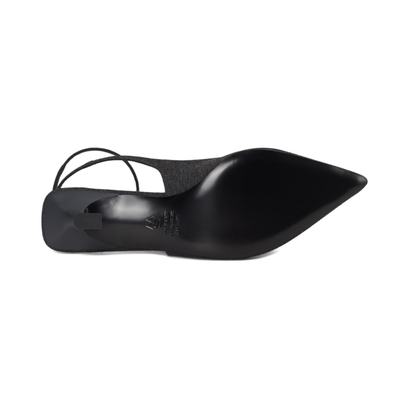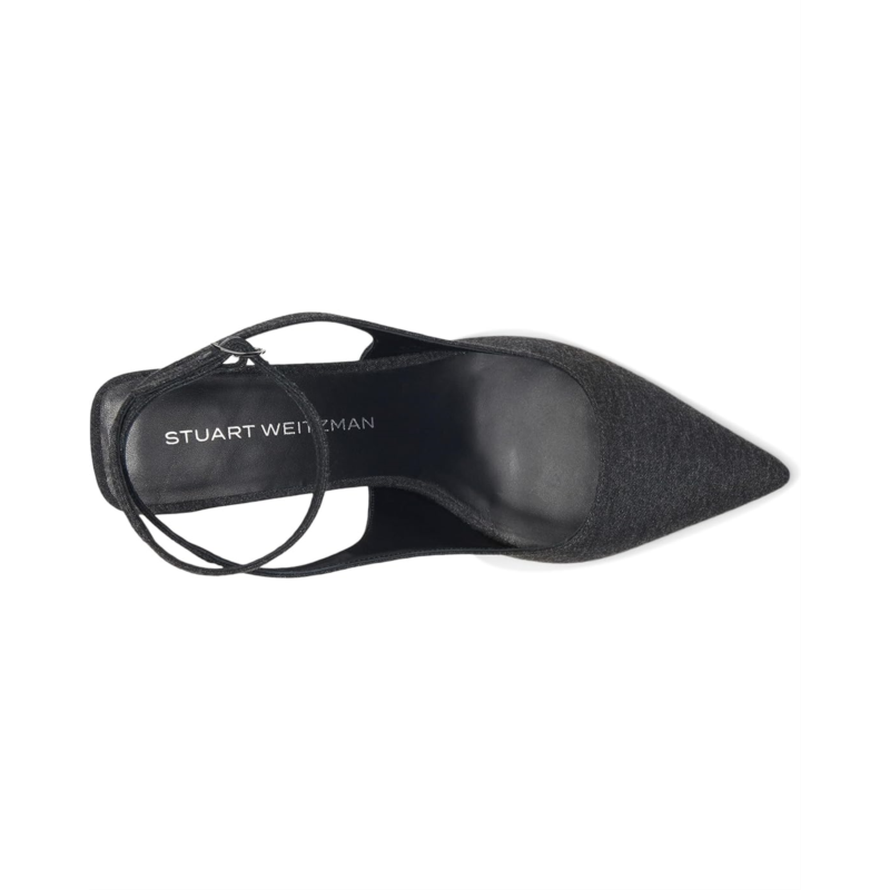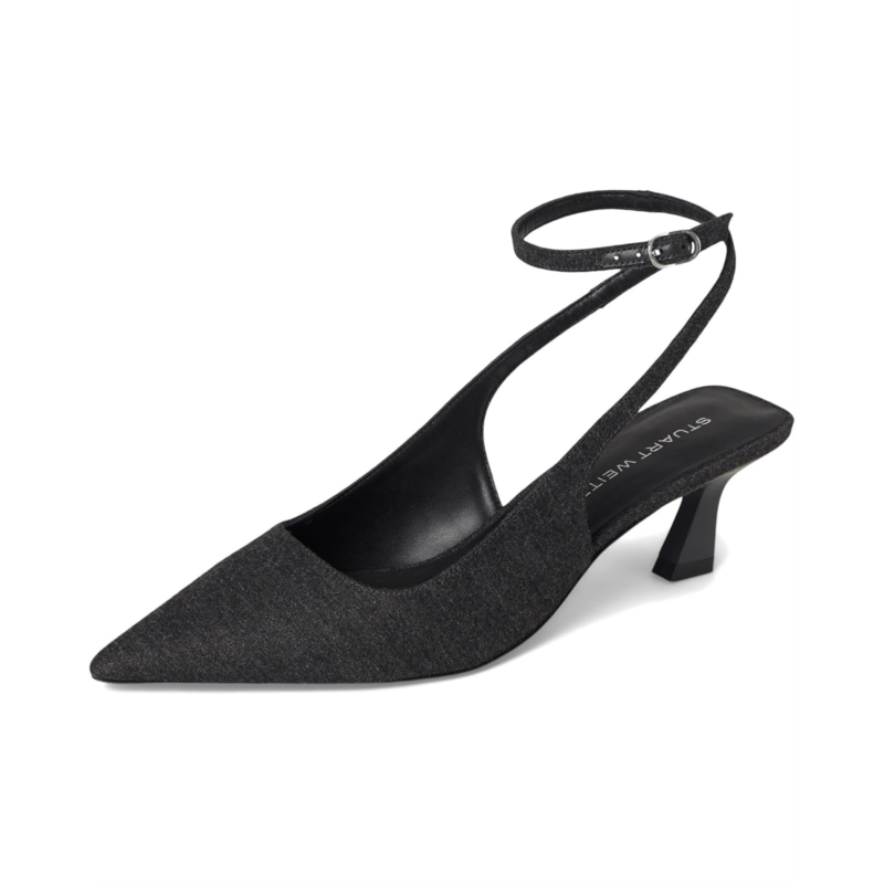 The Stuart Weitzman Vinnie 50 Strap Pump is a sculptural statement piece that blends elegance with architectural edge. It features a sleek pointed toe and a distinctive squared-off back counter, complemented by wraparound buckle adjustable ankle straps for a secure, flattering fit.
