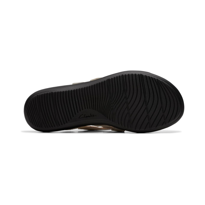 Set the fashion mood in utmost comfort wearing Clarks Laurieann Bali Flat Sandals. The slip-on footwear features leather upper construction with mesh lining and rubber footbed.