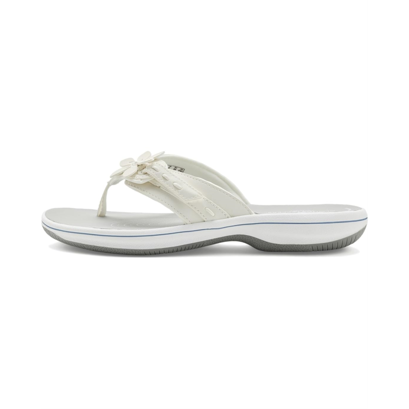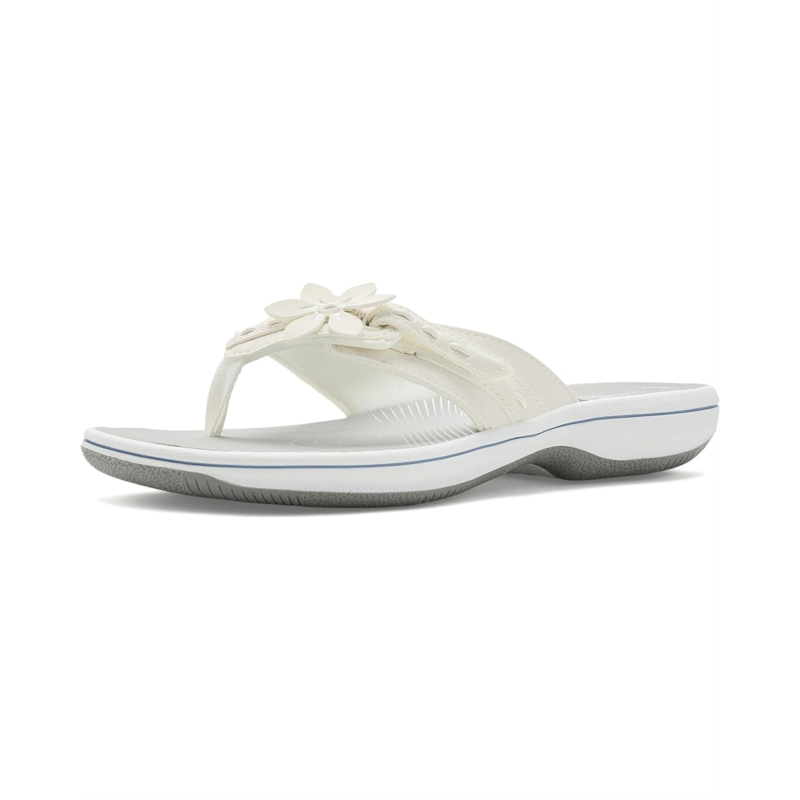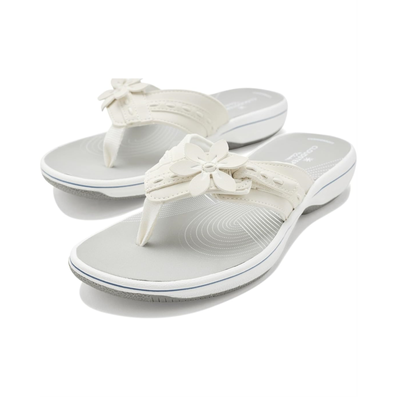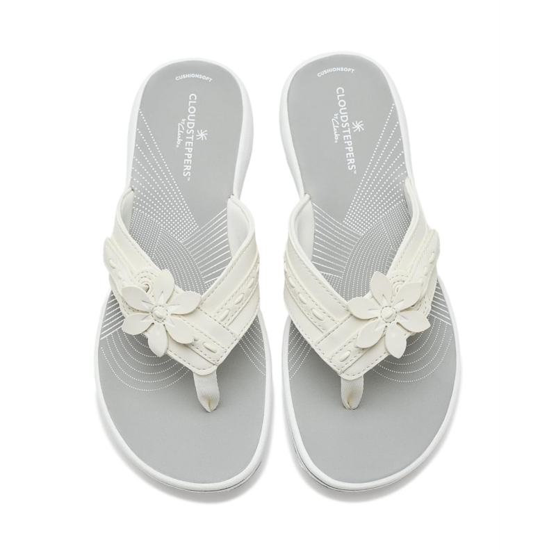 Topped with a pretty flower detail, the Clarks Breeze Opal sandals are a part of the Clarks Cloudsteppers collection, so you know that total underfoot comfort is a sure thing. They are crafted with a synthetic rubber upper for a skin-gentle feel, while the grippy thermoplastic rubber outsole makes for confident support and easy-breezy steps. Their foam insole and polyurethane lining add to their comfort. These slip-on sandals are designed with a cushioned, Soft foam footbed that delivers shock absorption and comfort.