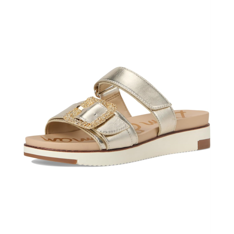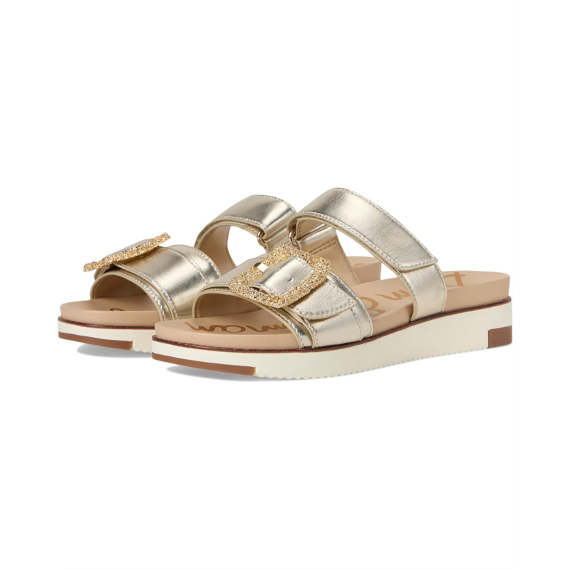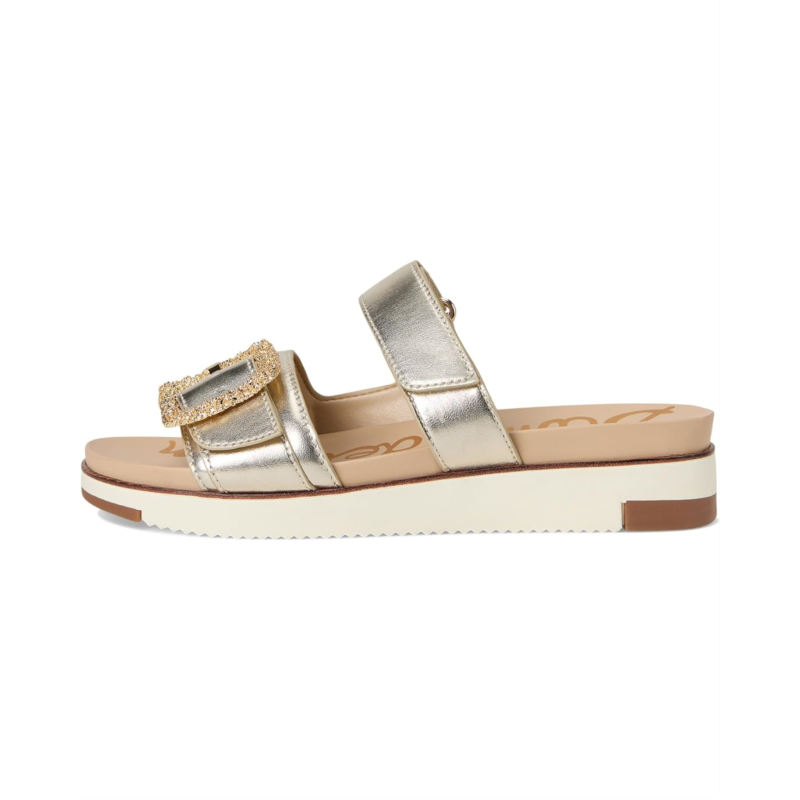 Meet the Sam Edelman Adrianna 2 sandals. A modern update on our classic sport sandals, these slides are your perfect companion for summer. They are made of a leather upper, faux leather insole, and polyurethane lining. These two-band leather sandals effortlessly blend style and comfort, making them your go-to choice for any occasion.