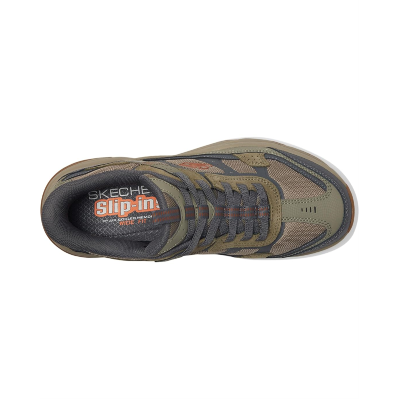 Keep up with the pace in these stylish and supportive SKECHERS Vigor AT Hands Free Slip-In Sneaker. These low-top sneakers feature a flexible slip-on front on the top of the shoe for a comfortable fit and an exclusive heel pillow holds your foot securely in place. Crafted with a double stitch suede overlay upper and Skechers Air-cooled Memory Foam insole, these shoes provide pressure relief, instant comfort, and breathability. Plus, the cushion contours to most foot shapes and helps wick moisture or sweat away. The gel-infused, high-rebound memory foam allows powerful movement while indulging in your favorite sports. The ankle pull tab on the shoes is designed for easy donning and doffing.