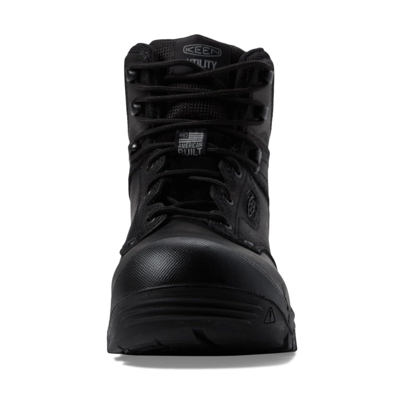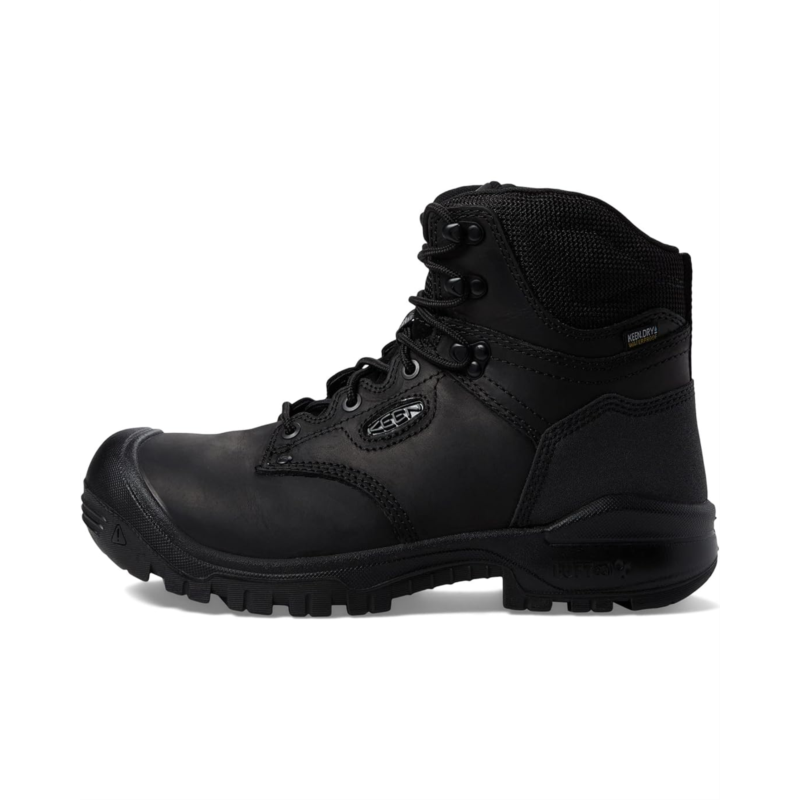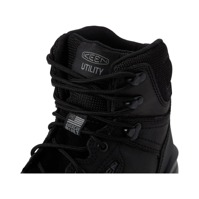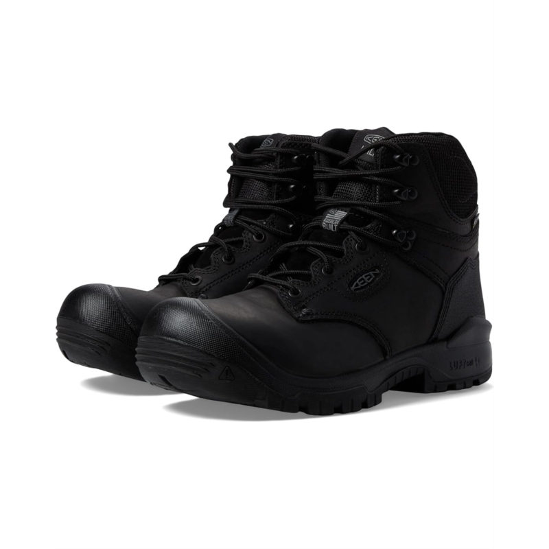 Left and right asymmetrical KEEN.PROTECT soft toes that meet ASTM F2892-18 EH (Electrical Hazard) standards help safeguard against minor impact, but not reinforced with a secondary crush resistance.Leather sourced from a Leather Working Group (LWG) Certified tannery.