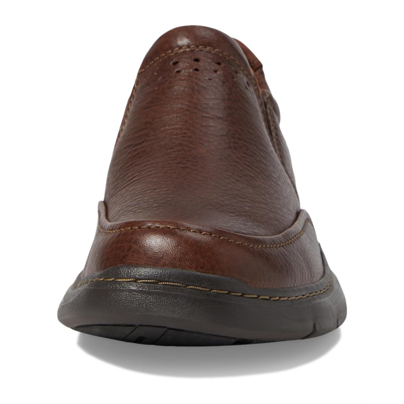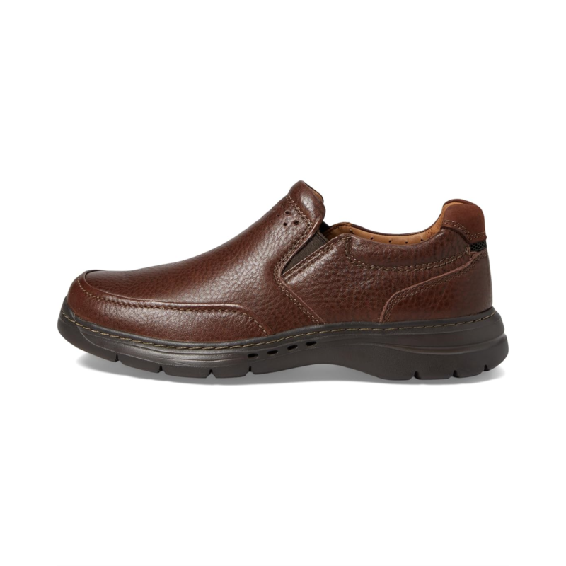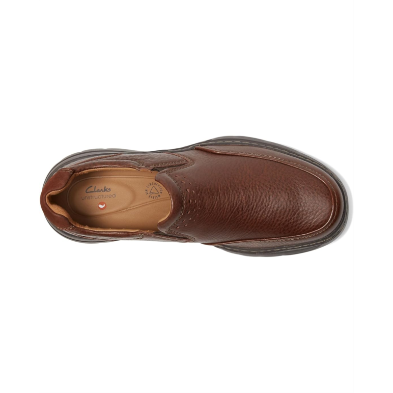 Walk in comfort and style in the Clarks Un Brawley Step slip-on. Elastic gores and an Air Circulation System that pulls in fresh air to keep feet dry in comfort. An OrthoLite footbed dulls impact and wicks away moisture.