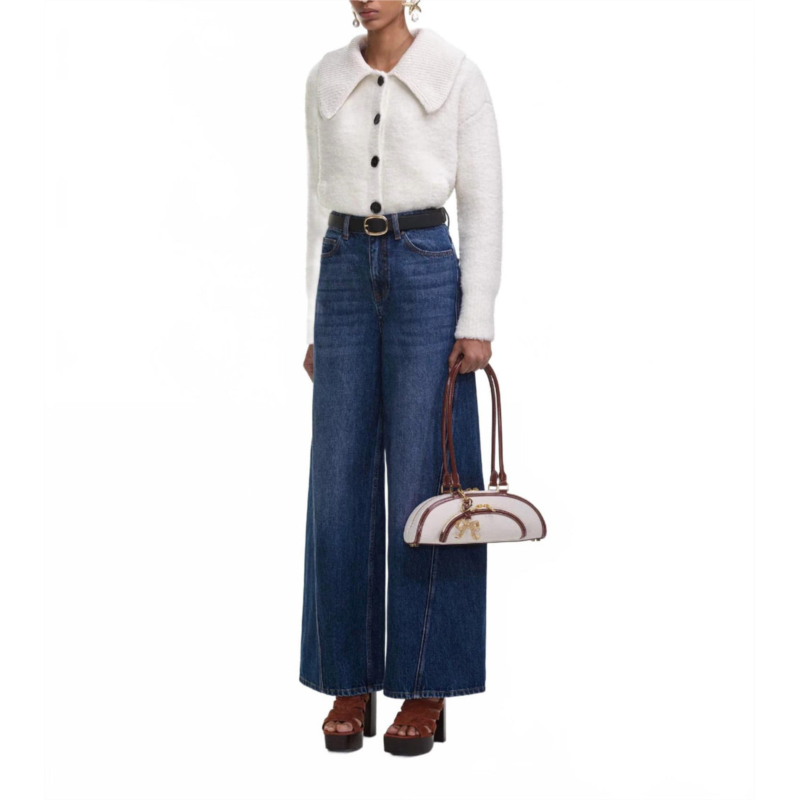 Pair these wide leg jeans with mules, slides or your favorite strappy sandals.Introducing the Self-Portrait Bleached Denim Jeans in a striking blue that captures attention effortlessly. Designed in a flattering high-rise and wide-leg silhouette with a sophisticated solid pattern, these jeans feature a convenient fly front zip closure and an inseam of 75.5cm/30''. Crafted from main fabric of 100% cotton and lined with a blend of 64% polyester and 36% cotton, they offer a minimal stretch fit. Perfect for holiday parties or spring outings, these jeans are a versatile addition to any wardrobe.