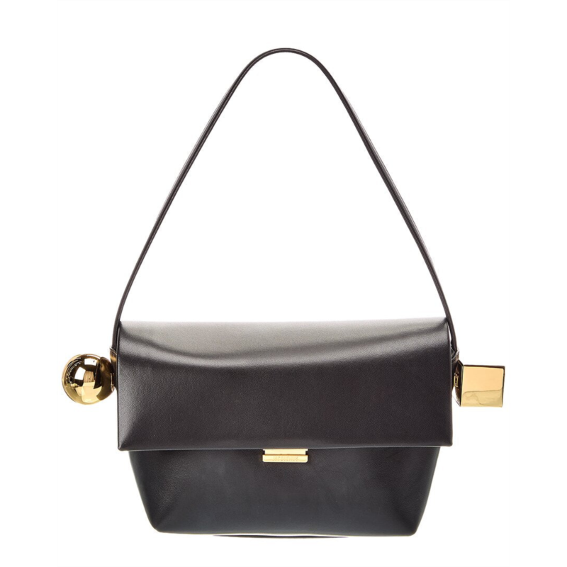Elevate your accessory game with the Jacquemus The Rond Carre Leather Shoulder Bag. This luxurious handbag, made in Italy, is a perfect blend of sophistication and style. Crafted from black leather and accented with gold-tone hardware, this bag features an exterior pocket for easy access and a chic fold-over flap with a pushlock closure.The interior is lined with canvas and includes a divided interior, wall pocket, and zippered pocket for all your essentials. Measuring 11 inches wide, 5.75 inches high, and 4.5 inches deep, this shoulder bag is spacious enough to carry all your must-haves.Designed with a 11-inch shoulder strap drop, this bag is versatile and comfortable to carry. Whether you''re running errands or heading out for a night on the town, the Jacquemus The Rond Carre Leather Shoulder Bag is the perfect companion.Please note that all measurements are approximate and may vary slightly. Rest assured, our products are 100% genuine, sourced from trusted independent suppliers. Experience luxury like never before with Jacquemus.