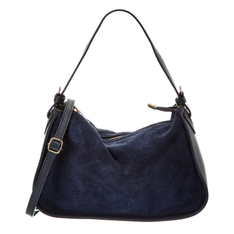 Introducing the Isabella Rossetti Brooke Suede Bag, a luxurious addition to your handbag collection. Crafted in Italy from navy leather, this shoulder bag exudes sophistication and style. The perfect size for everyday essentials, it measures 10.25 inches wide, 8.7 inches high, and 5.9 inches deep. Please note that all measurements were taken by hand and are approximate, with slight variations that may occur. Elevate your ensemble with the exquisite craftsmanship of Isabella Rossetti.