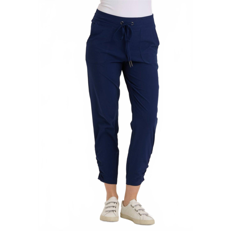 Enhance your wardrobe with this trendy cropped number, designed to blend style and practicality. The comfortable fit allows for easy all-day wear. The perfect length to pair with your favorite mules.Introducing the Women''s Active Lyan Pant by XCVI, a solid navy piece perfect for versatile occasions. Designed with a ruched leg opening, these ankle-length pants offer a relaxed fit with a mid-rise, pull-on waist featuring an elastic waistband and drawstring for comfort. Made from Whisper Stretch fabric, composed of 88% Polyester and 12% Spandex, these pants are preshrunk and machine washable for easy care. Imported and equipped with two front slash pockets and two back pockets, this piece is ideal for workwear and engagements this spring.