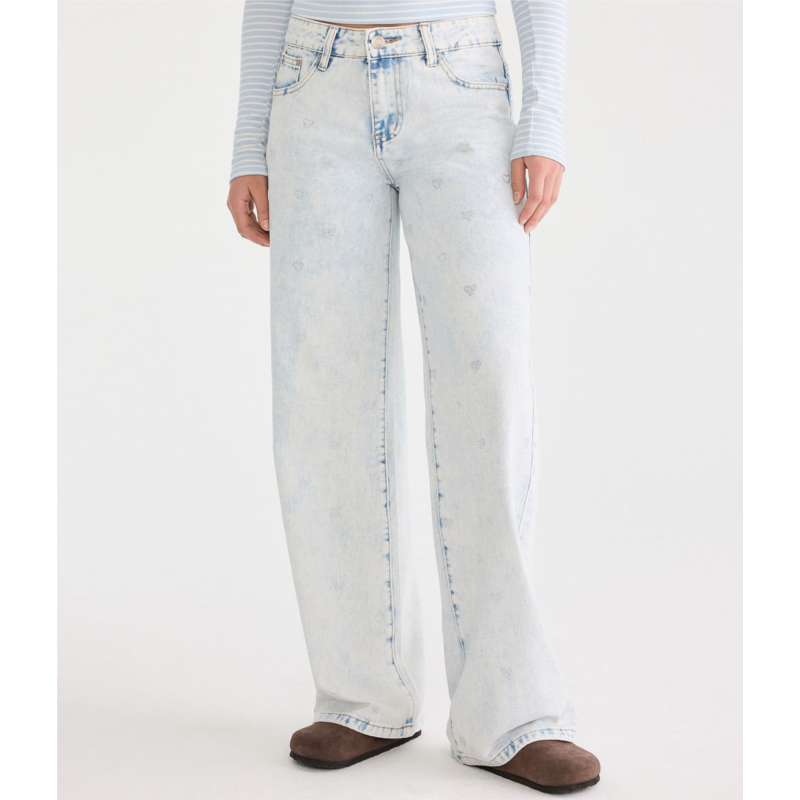 [US] Aeropostale low-rise baggy wide leg rhinestone hearts jean