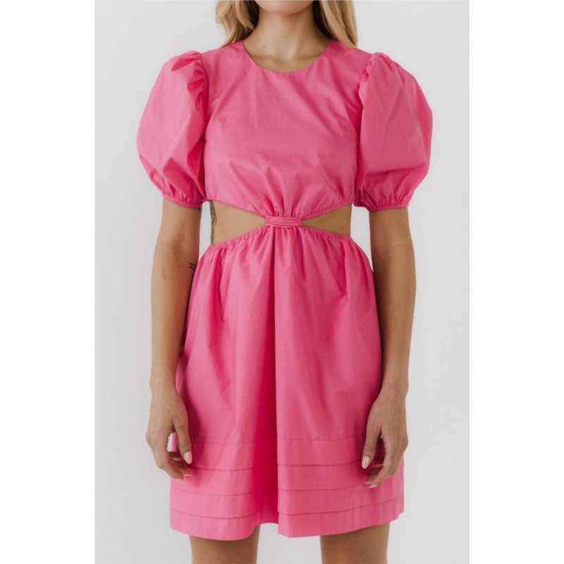 [US] English Factory pleats with cut-out mini dress in pink