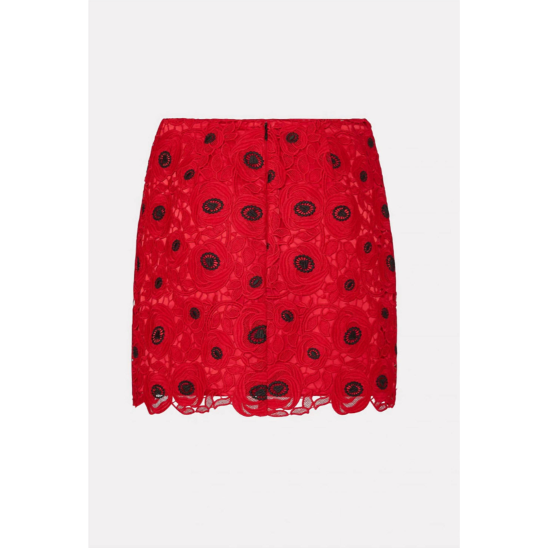 [US] MILLY embroidered lace modern mini skirt in red/black