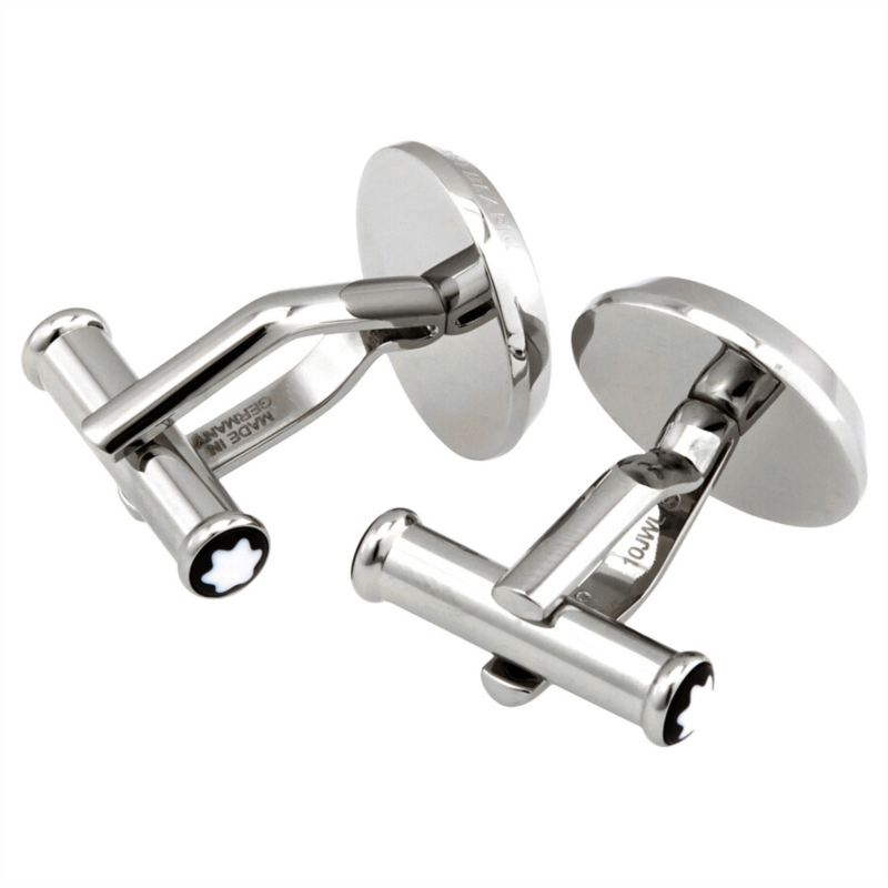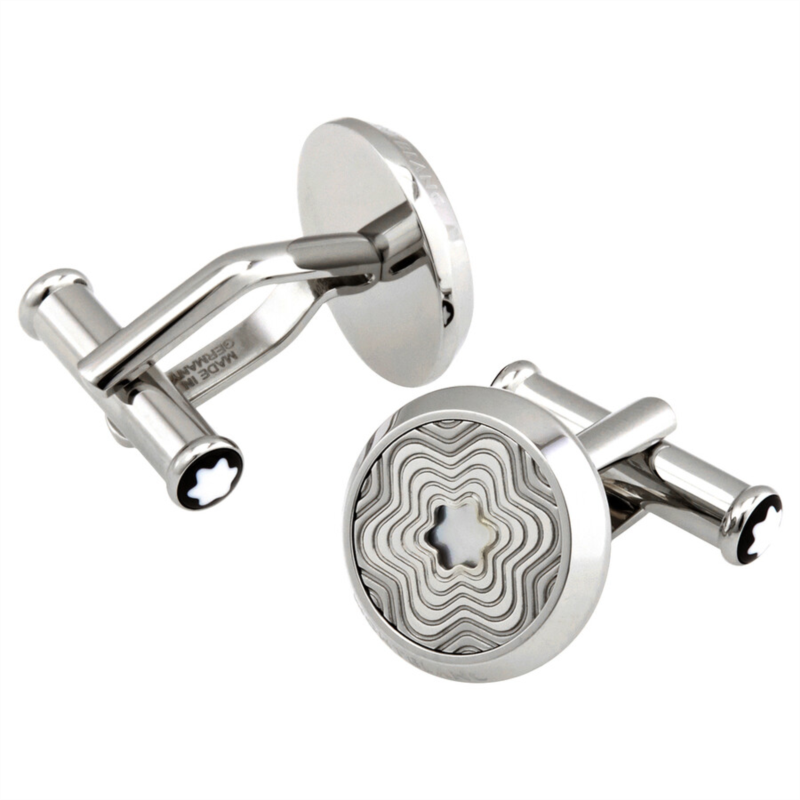 Montblanc Cufflinks. SKU: 123808. Metal Type: Stainless Steel. Mother of pearl snowcap emblem forming into a star pattern. Montblanc Stainless Steel Cufflink.