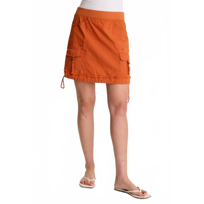 The perfect mini skirt does exist.The Leticia Mini Skirt by XCVI is a chic choice for minimalist summer styling, offered in versatile white. Constructed from a cotton blend poplin with a jersey waistband, this skirt features an adjustable corded hem and pull-on elastic waistband for comfort. It includes tab-flapped side cargo pockets with antique brass hardware buckles, adding functional elegance. With a center front length of approximately 18 inches and center back of about 18.75 inches, this preshrunk skirt is machine washable, making it ideal for travel wear.