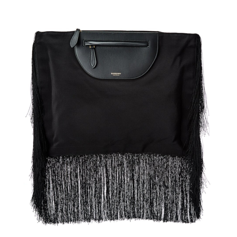 [US] Burberry olympia fringe canvas & leather clutch