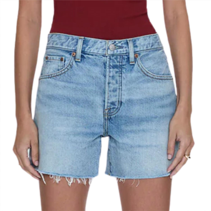 High-waist is here to stay and we especially love this style short.Introducing the Andie High Rise Vintage Cut Off Short by PISTOLA, a chic addition to your summer wardrobe. These high-rise shorts in a light medium wash feature a flattering rise of 11 inches, offering a perfectly vintage feel with a solid pattern. Crafted from 100% cotton, they promise a rigid yet comfortable fit. Closure - Button closure. Care - Machine wash. Designed for women, these shorts come with pockets and are imported. Perfect for minimalist summer vacations or Thanksgiving gatherings, these shorts are a must-have for effortless style. Model is 5’9” wearing size 26.