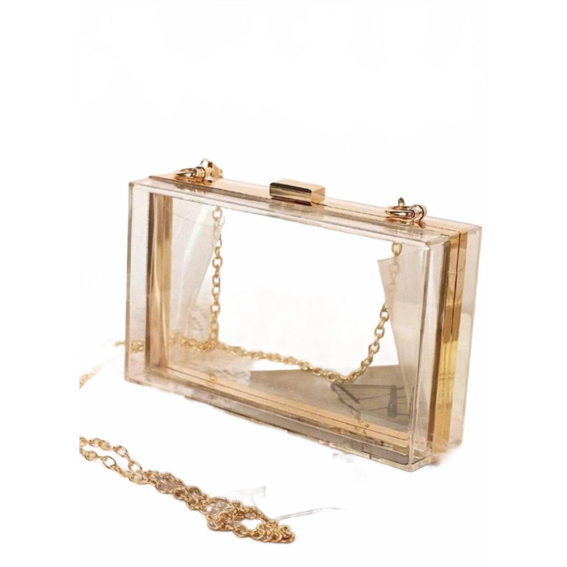Don''t be mistaken by its size, this little bag holds more than you''d expect!Elevate your evening ensemble with the Women''s Cindy Box Clutch Bag by MiMi Wholesale, an exquisite accessory crafted from durable acrylic. This clear clutch provides the perfect finishing touch with its sleek design, ensuring your essentials are showcased in style. The compact dimensions of 7'' width, 4'' depth, and 2'' height make it an ideal accessory for any occasion. Featuring a detachable chain strap, it''s designed to complement your look with versatile elegance.