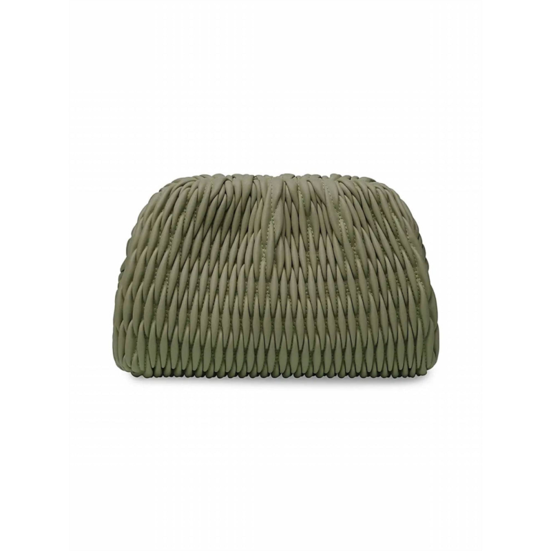 The perfect clutch for an evening out on the town.The Women''s Enzo Clutch Bag by A.L.C. is a sophisticated accessory in army green, expertly quilted from vegan leather. Crafted from 100% Polyurethane, it features dimensions of 7.5'' x 3'' x 8.375'', offering a compact yet stylish option for your essentials. Inside, a lining of 95% Viscose and 5% Elastane ensures a durable finish, while a magnetic closure and clam shell hinge provide secure access. This clutch also includes a small inner pocket for a touch of practical elegance.