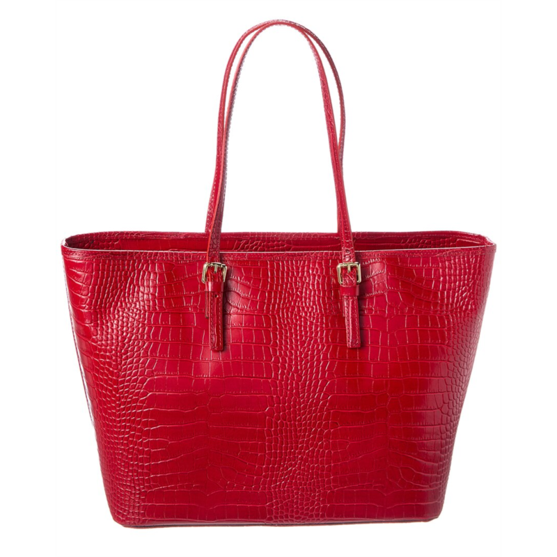 Introducing the Persaman New York Penny Croc-Embossed Leather Tote, a luxurious addition to any womans handbag collection. This stunning tote is crafted from red leather, featuring a classic croc-embossed design that exudes sophistication. Made in Italy with meticulous attention to detail, this tote measures 13 inches wide, 10.25 inches high, and 5 inches deep. Please note that all measurements were taken by hand and are approximate, so slight variations may occur. Elevate your look with this timeless and elegant tote bag from Persaman New York.