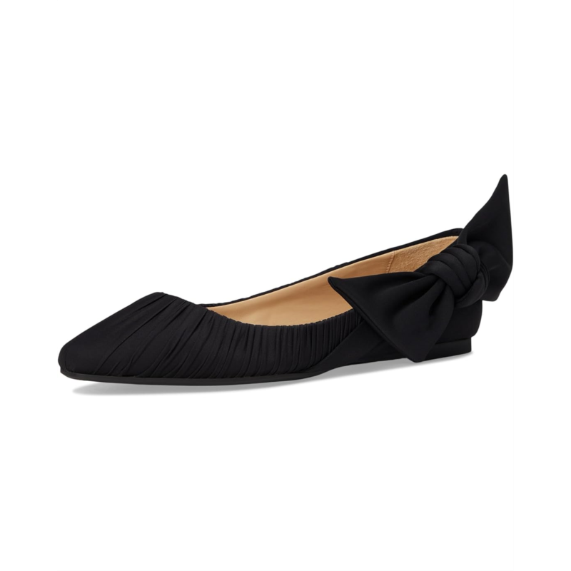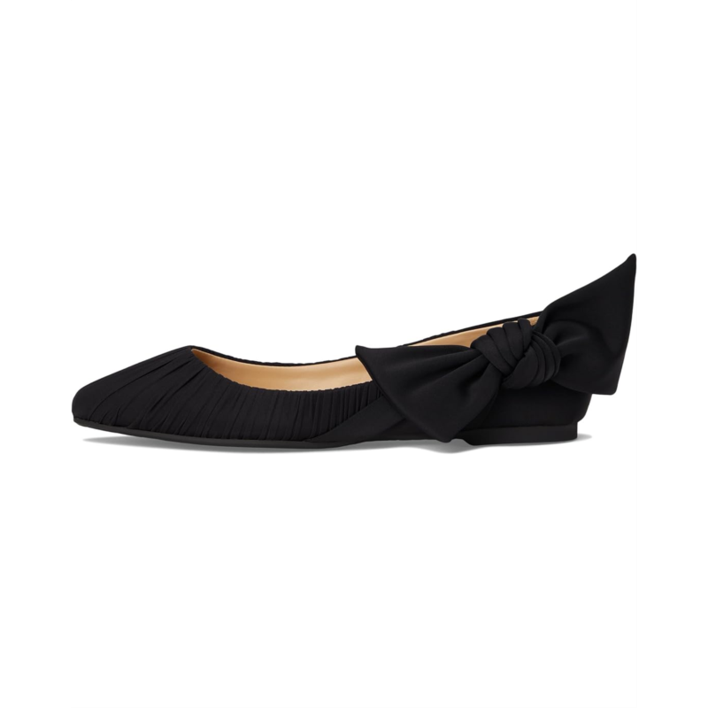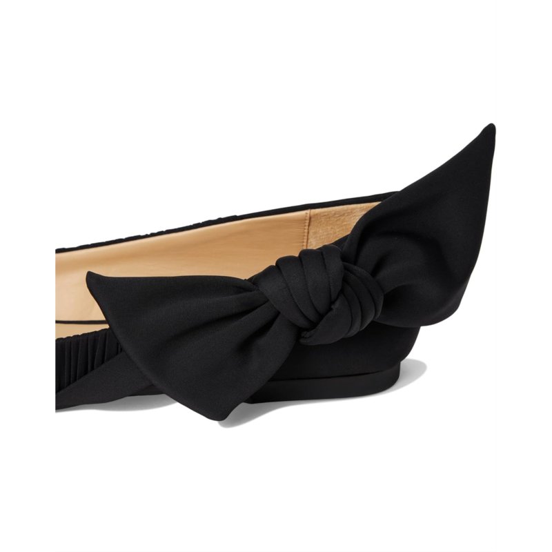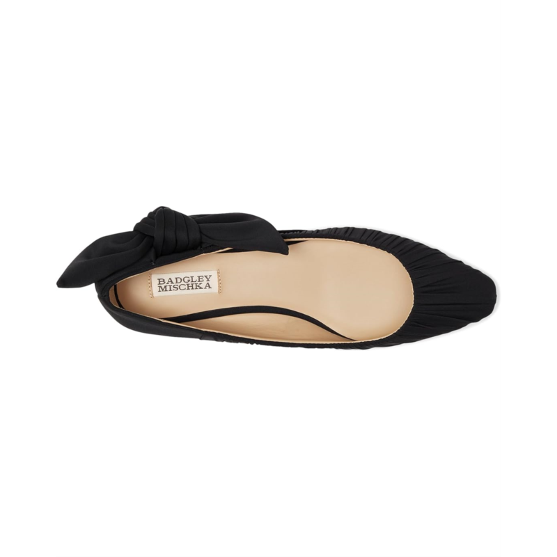 - The Badgley Mischka Valyn shoes are stylish flats with an oversized bow detail for an eye-catching appeal. These slip-on shoes are made of a silk upper, leather insole, and leather lining. Step into effortless comfort and style with these ballet flats.