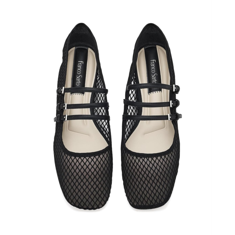 - Elevate your every step with a refined Franco Sarto Tatum flat sandals designed for the art of movement and quiet moments of style. Crafted from synthetic resin upper, polyester lining, and leather insole, this pair of shoes features square toe, mary jane silhouette, three strap detailing with adjustable buckle closure, and low heel design. This versatile ballet is perfect for elevating everyday and special occasion looks.