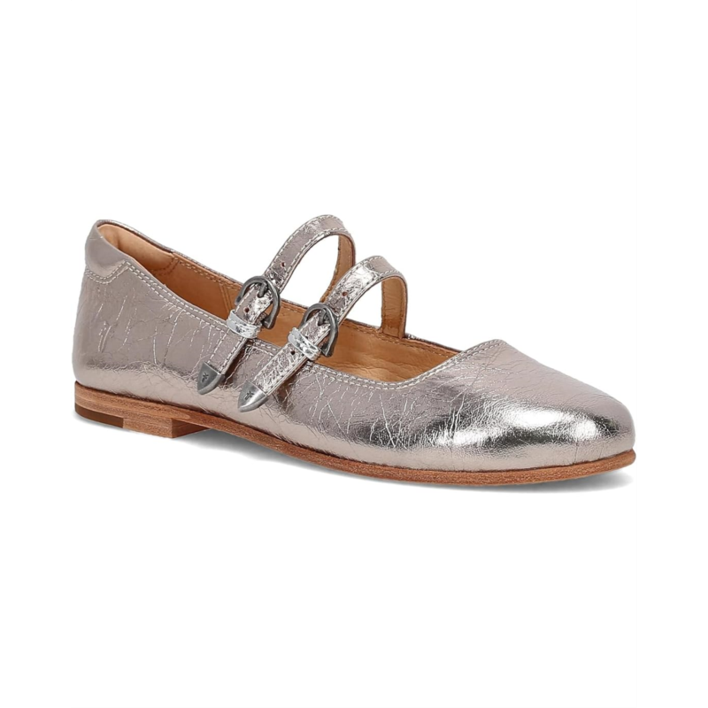 - Elevate your everyday style with the Frye Carson Multi Mary Jane shoes. Crafted from a soft, scrunched leather upper with lustrous metallic finishes and two straps with buckle closure, these shoes offer long-lasting durability and a comfortable fit. The durable leather outsole provides all-day support without compromising on style. These flat shoes come with a leather insole and lining. Swap out your sneakers for these multi-strap leather shoes to instantly upgrade your look, whether youre pairing them with denim or a flowing maxi dress.