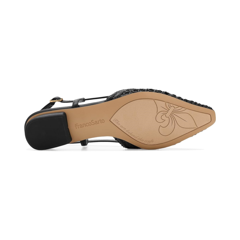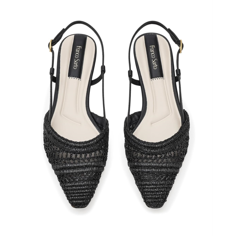 - A modern classic, the Franco Sarto Riona shoes artfully blend timeless Italian inspiration with effortless, wearable ease. Their feminine snip-toe design and sleek slingback silhouette elevate any casual look. These slip-on shoes feature a cushioned, high-frequency sock and a supportive fit for comfort on the go. Their woven polyurethane (PU) upper creates a standout statement that transitions from day to night. These womens flat shoes are made of an ethylene vinyl acetate (EVA) insole for cushioned comfort. They are lined with polyurethane and finished with a durable rubber outsole for long-lasting wear.