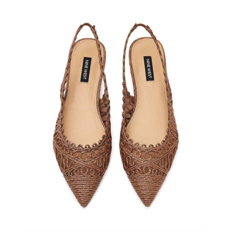 - Upgrade your wardrobe with the Nine West Jovias flats. These dress flats are made of a mesh upper, a cushioned insole, and a textile lining. Featuring a slingback strap, woven detailing, and a stylish pointed toe shape, these slip-on flats are the perfect wardrobe staple.