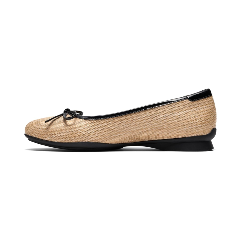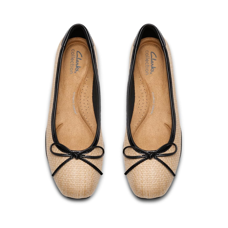 - Introducing the Clarks Jazmynn Bow - a modern classic, comfort-focused ballerina-inspired shoe designed for all-day wear. Crafted from soft, premium materials, it features a thermoplastic rubber outsole for grip and flexibility, and a plush Ultimate Comfort polyurethane foam footbed for all-day ease and support.