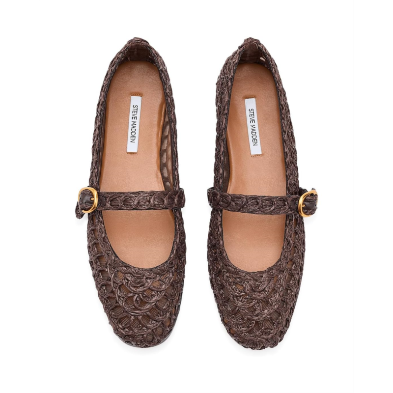 - Introducing the Melody ballet flat, exclusively from Steve Madden. Crafted with a raffia upper, this style offers a natural, textured look perfect for warm-weather wear. The nylon lining and insole provide lightweight comfort, while the buckle strap closure ensures an adjustable and secure fit.