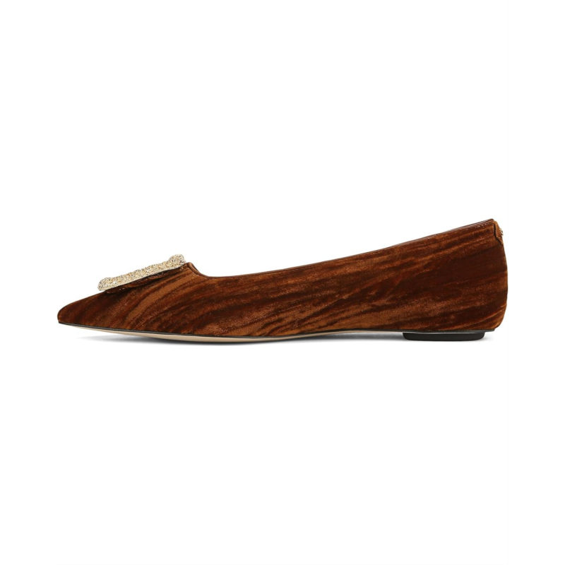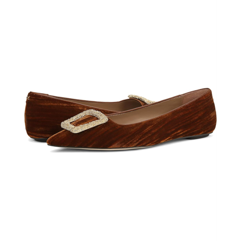 - Our Sam Edelman Nico pointed toe ballet flat is the perfect skimmer for that day to night look. From the luxe materials to the embellished medallion, this ballet is sure to turn heads. Their slip-on design makes them a convenient choice, while the velvety finish brings the classy element to your look.