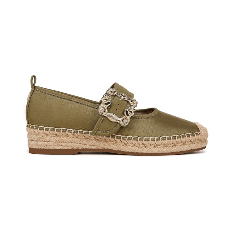 - Enjoy a different look with every apparel adding Sam Edelman Maddy footwear to your collection. The footwear is crafted from fabric upper, leather lining, and polyurethane insole. It has round toe, heel pull-tab, and strap with decorative buckle detail for secure fit.