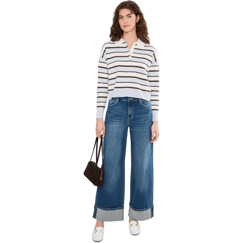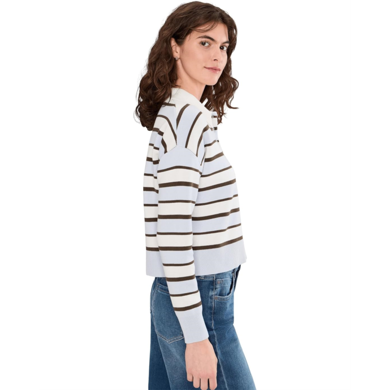 - The 525 america Seraphina Cropped Rugby Pullover blends classic rugby inspiration with modern style for a look that feels both timeless and fresh. Designed with a structured collared neck and a stylish quarter button placket, this pullover adds a polished touch to your everyday wardrobe while keeping the vibe relaxed and easygoing. The cropped silhouette gives it a contemporary edge that pairs perfectly with high-waisted jeans, skirts, or tailored trousers. Long sleeves provide comfortable coverage, making it a great layering piece for breezy days or transitional weather. The convenient pull-on design ensures effortless wear, so you can slip it on and head out in style without missing a beat.