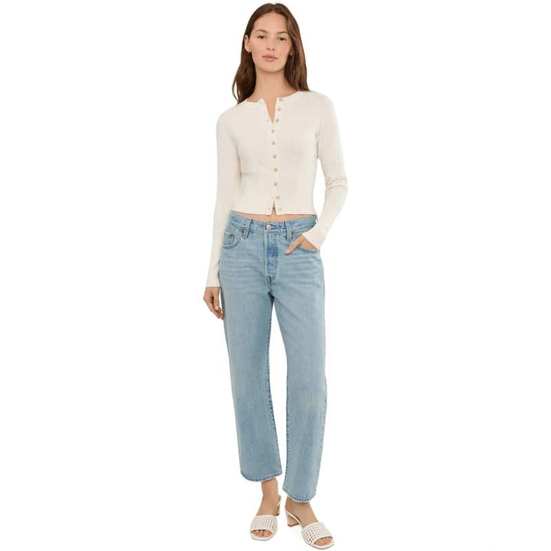 - Indulge in cozy comfort and add a hint of style to your look wearing the 525 america Monroe High Rib Cable Cardigan. The button-front cardigan features a cable construction, ribbed crew neck, long sleeves with ribbed cuffs, and a straight ribbed hem.