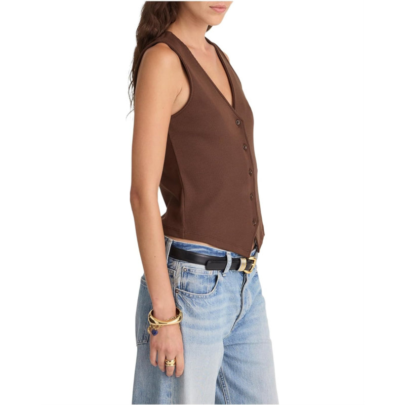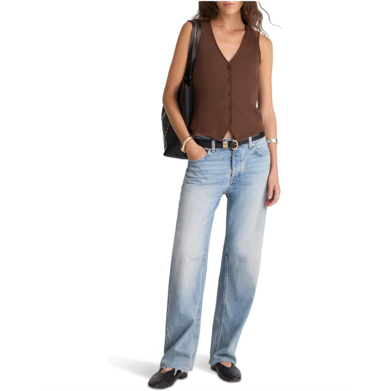 - Made from a cotton blend, the Madewell Knit Vest is perfect to complement your looks and outfits. This sleeveless vest is designed with a V-neckline and a straight hem. Its buttoned front closure ensures easy wear. This button-down vest makes a versatile addition to your wardrobe.