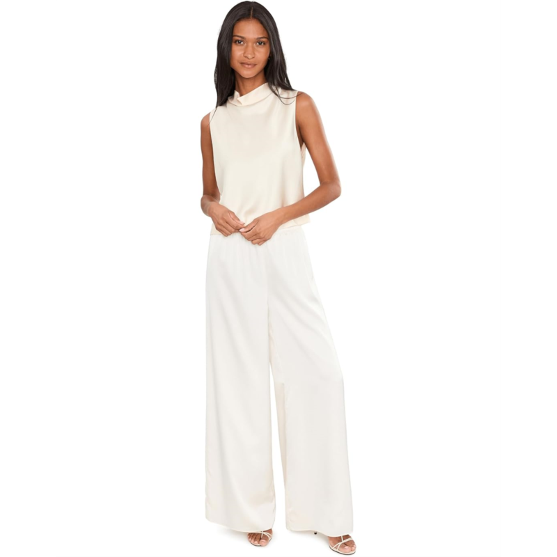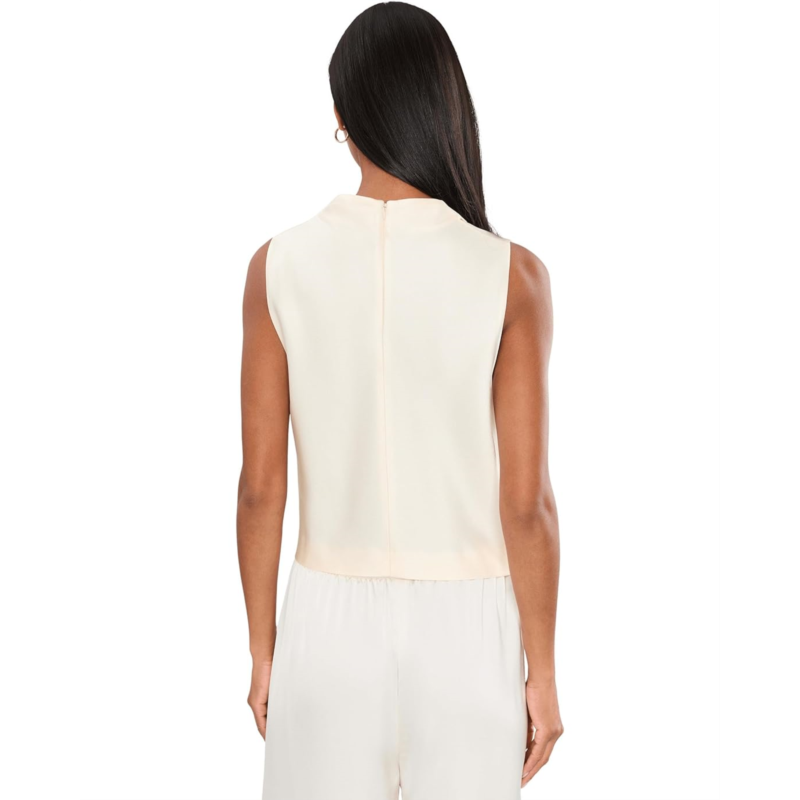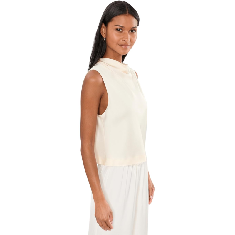 - The Vince Cropped Cowl Neck Top is a cropped satin blouse designed with an easy, luminous drape and finished with a softly draped cowl neckline. It features a sleeveless silhouette, a back zip closure, a relaxed fit, and a straight hem. Pair it with the matching maxi skirt for a coordinated look.