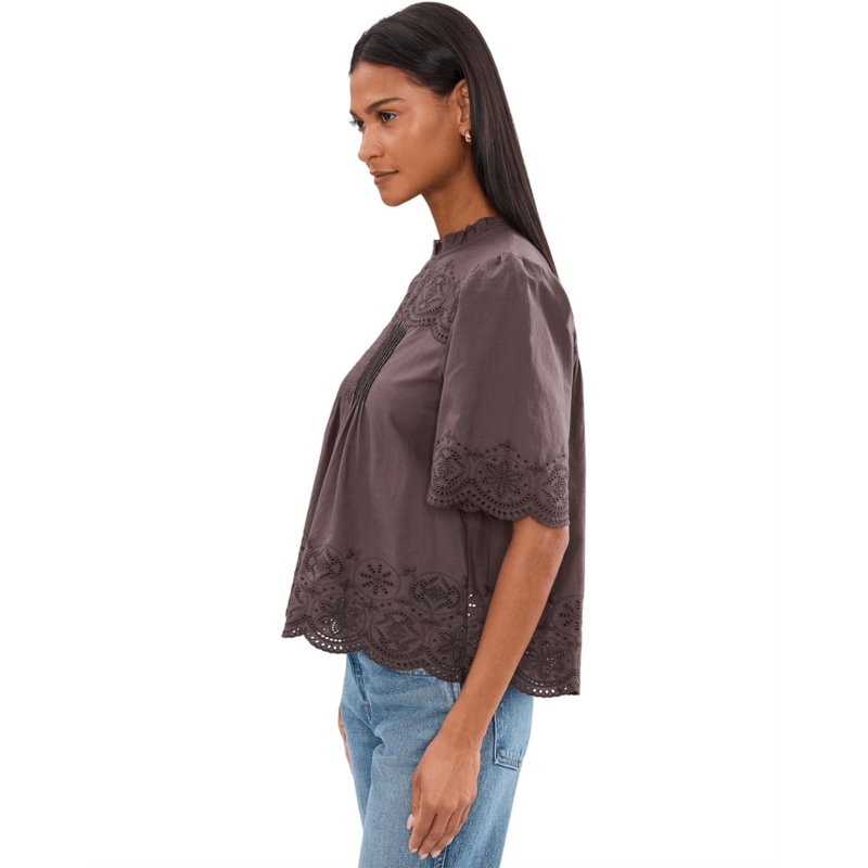 - Showcase a standout flair wearing the Madewell Embroidered Pintuck High-Neck Top. It features a high neckline with pintuck front pleats that add subtle texture and structure. The design is elevated with allover eyelets and scalloped edges.